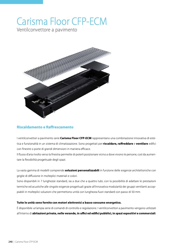 I ventilconvettori a pavimento serie Carisma Floor CFP-ECM rappresentano una combinazione innovativa di este-