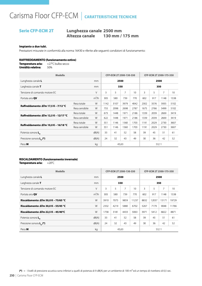 I livelli di pressione acustica sono inferiori a quelli di potenza di 9 dB(A) per un ambiente di 100 m3 ed un tempo di riverbero di 0,5 sec.
