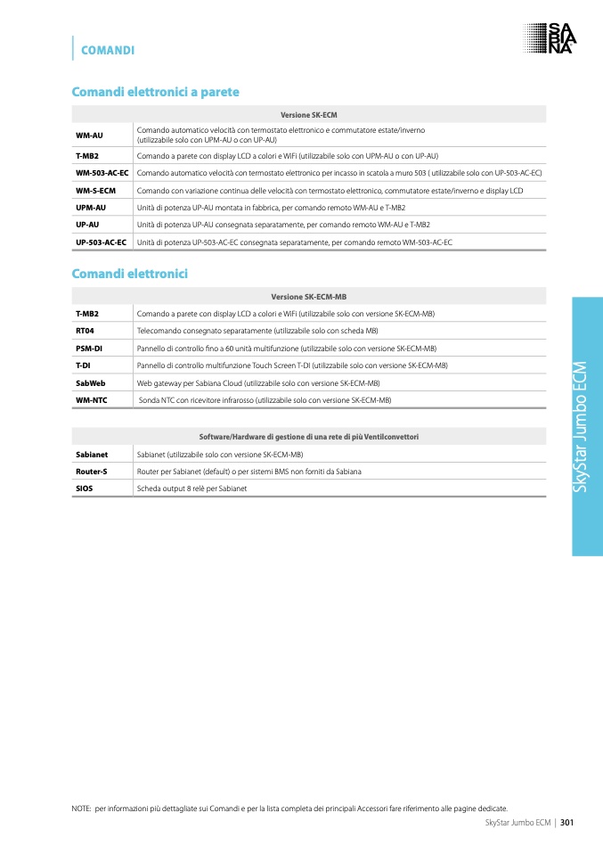 ù dettagliate sui Comandi e per la lista completa dei principali Accessori fare riferimento alle pagine dedicate.