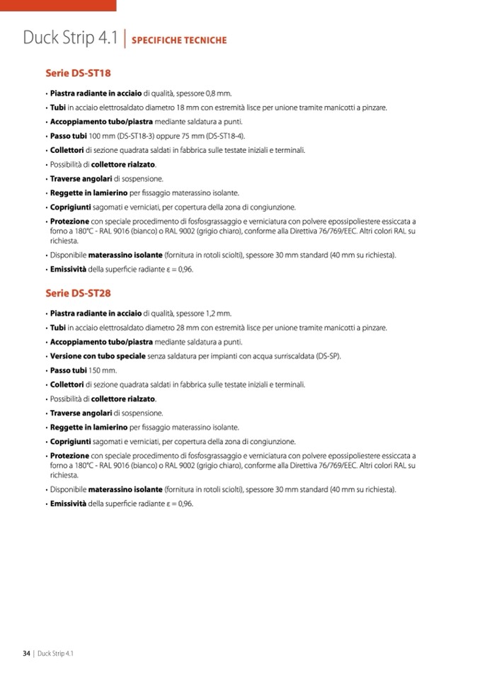 • Disponibile materassino isolante (fornitura in rotoli sciolti), spessore 30 mm standard (40 mm su richiesta).