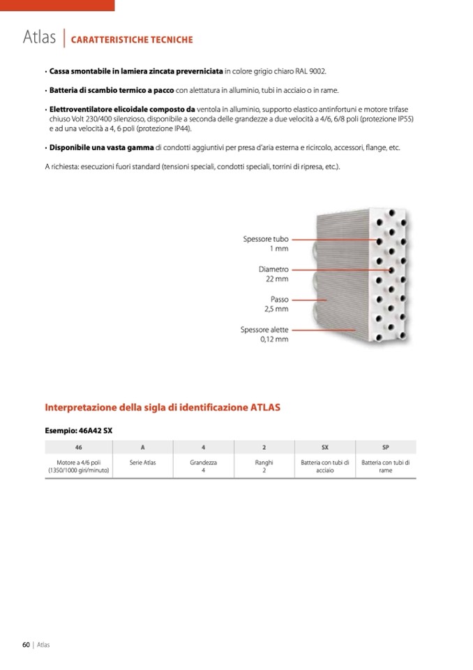• Batteria di scambio termico a pacco con alettatura in alluminio, tubi in acciaio o in rame.