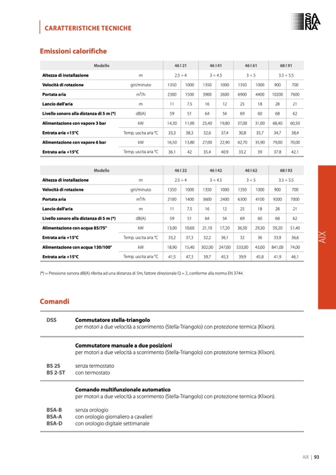 (*) = Pressione sonora dB(A) riferita ad una distanza di 5m, fattore direzionale