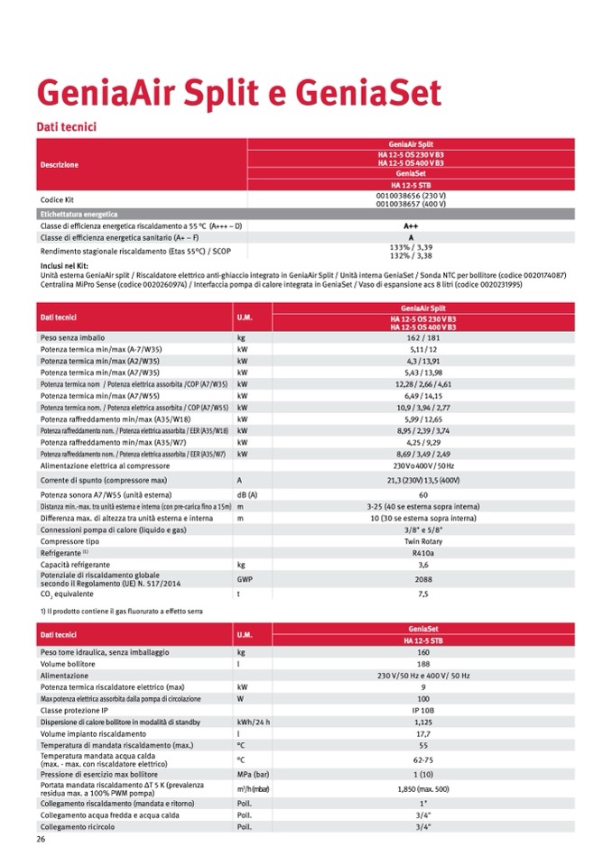 Unità esterna GeniaAir split / Riscaldatore elettrico anti-ghiaccio integrato in GeniaAir Split / Unità interna GeniaSet / Sonda NTC per bollitore (codice 0020174087