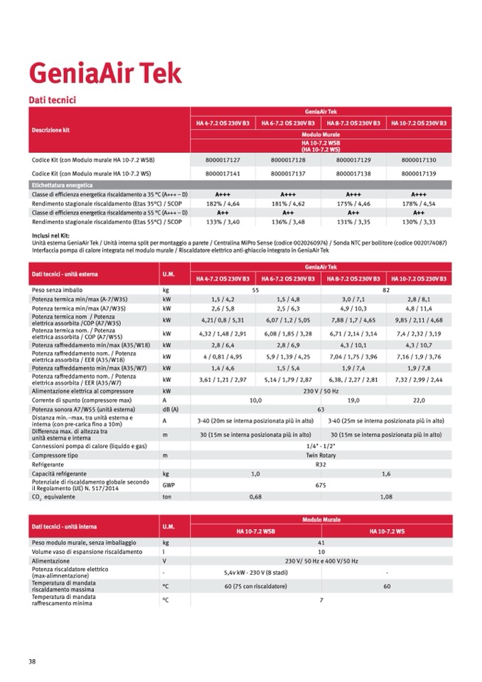 Unità esterna GeniaAir Tek / Unità interna split per montaggio a parete / Centralina MiPro Sense (codice 0020260974) / Sonda NTC per bollitore (codice 0020174087)