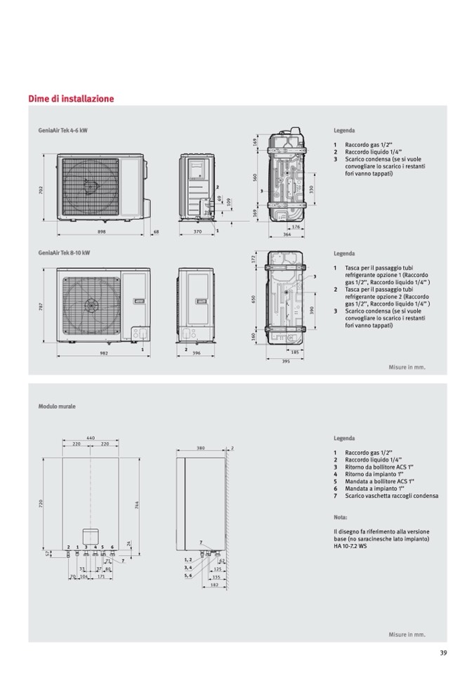 gas 1/2’’, Raccordo liquido 1/4’’ )