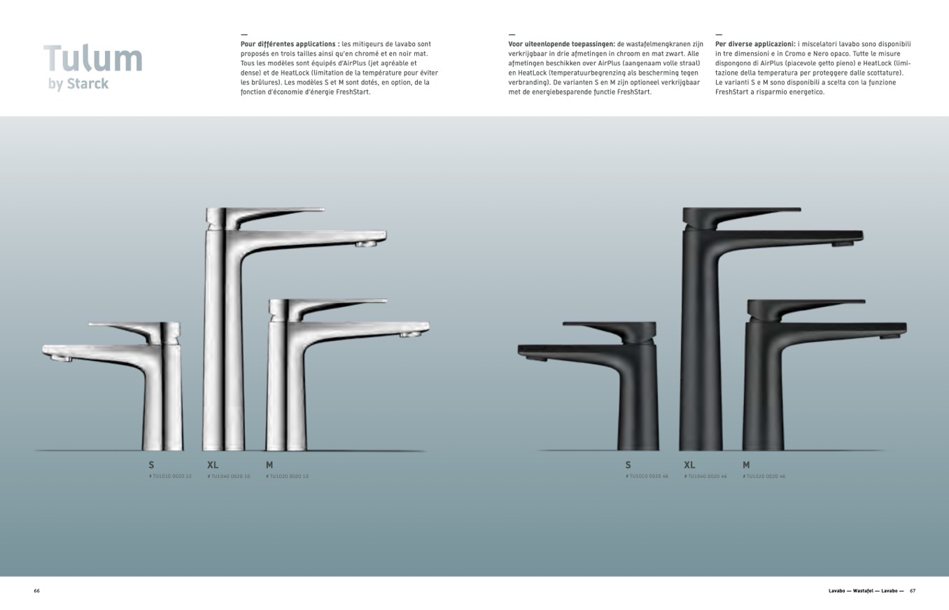 proposés en trois tailles ainsi qu’en chromé et en noir mat.