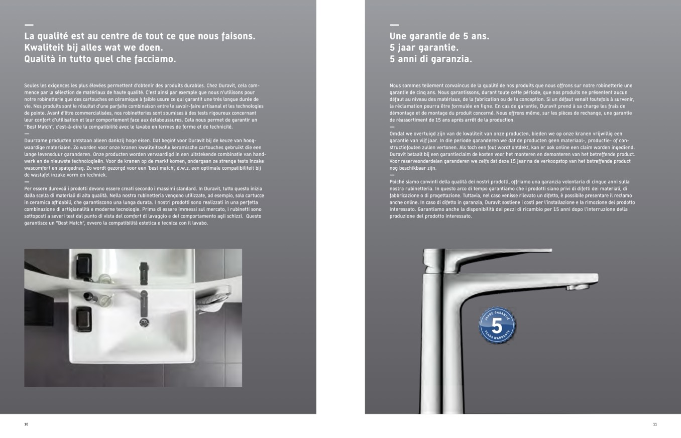 Seules les exigences les plus élevées permettent d’obtenir des produits durables. Chez Duravit, cela com-