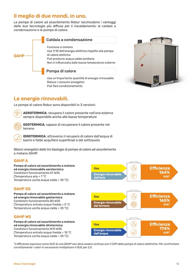 *L’efficienza espressa come GUE di una GAHP non deve essere confusa con il COP delle pompe di calore elettriche. Per confrontare