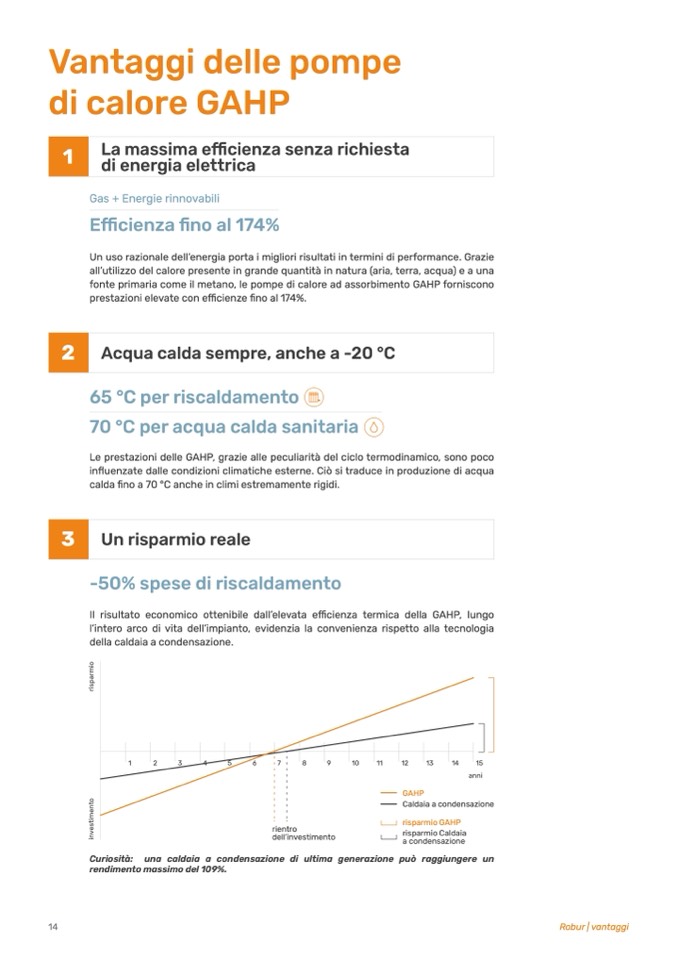 fonte primaria come il metano, le pompe di calore ad assorbimento GAHP forniscono