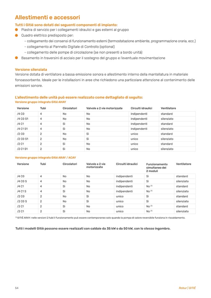Tutti i modelli Gitiè possono essere realizzati con caldaie da 35 kW o da 50 kW, con lo stesso ingombro.