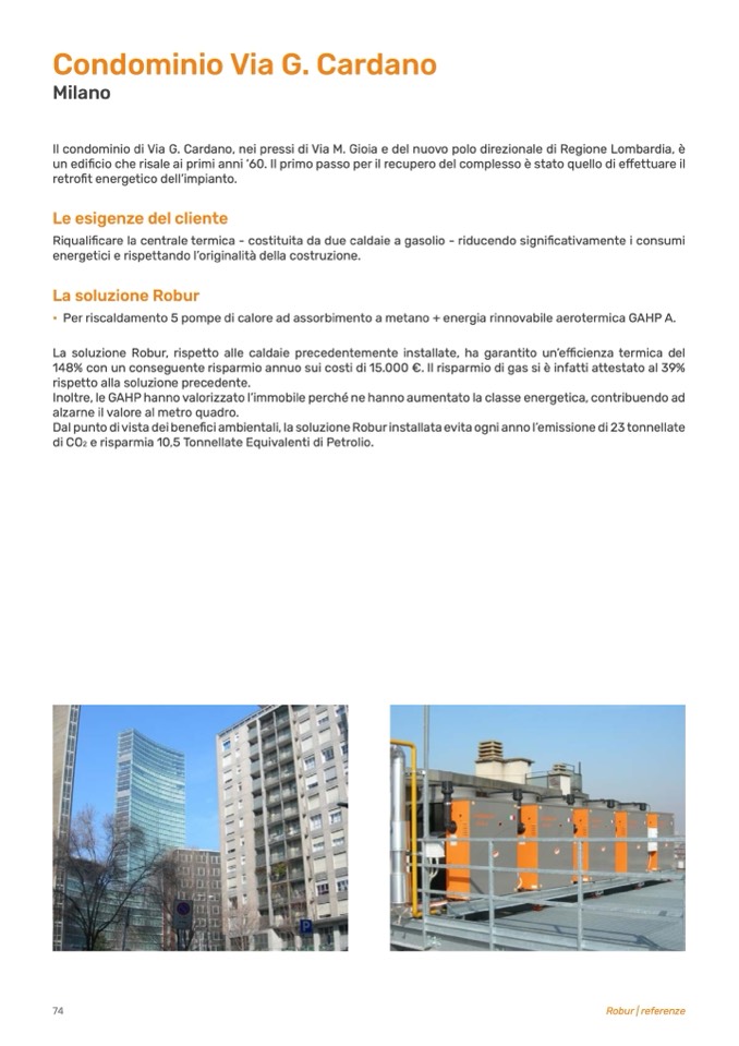 La soluzione Robur, rispetto alle caldaie precedentemente installate, ha garantito un’efficienza termica del