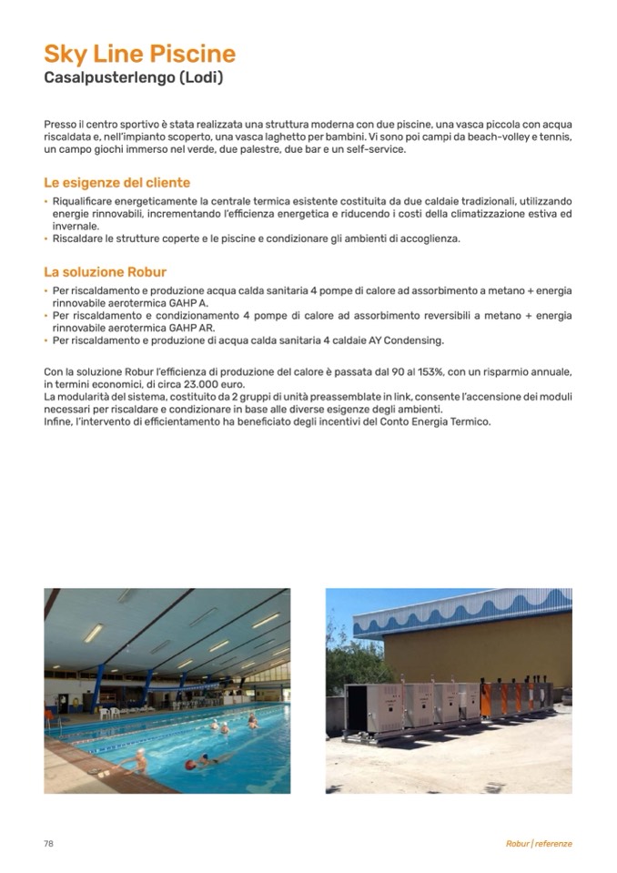 • Riscaldare le strutture coperte e le piscine e condizionare gli ambienti di accoglienza.