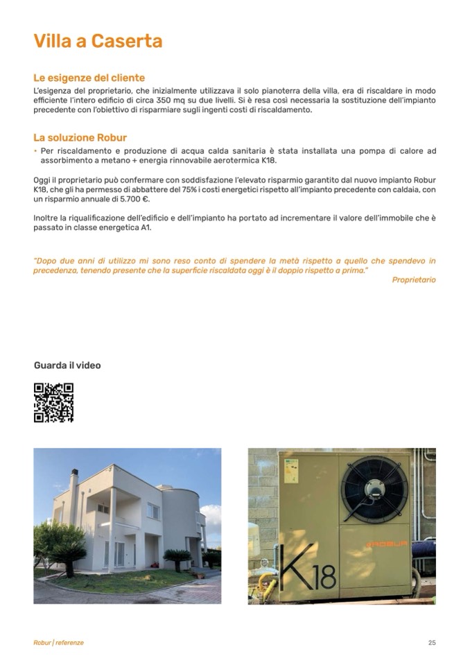 Oggi il proprietario può confermare con soddisfazione l’elevato risparmio garantito dal nuovo impianto Robur