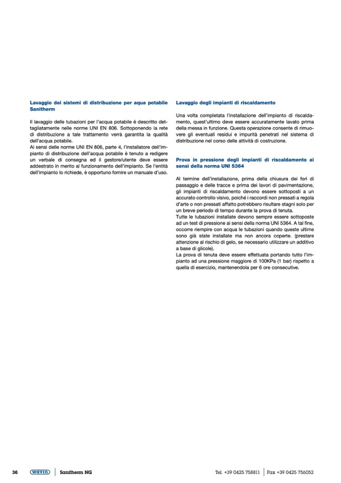 Tutte le tubazioni installate devono sempre essere sottoposte