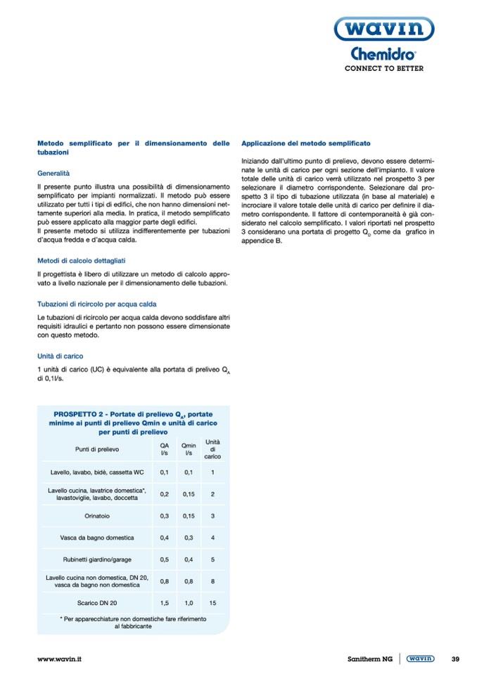 vato a livello nazionale per il dimensionamento delle tubazioni.