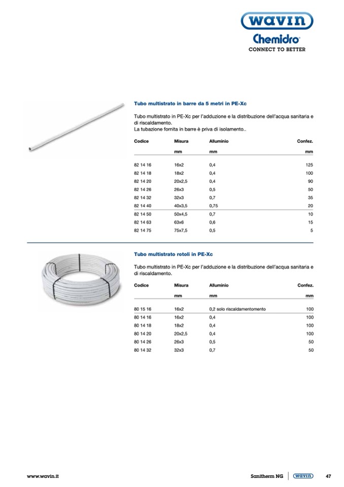 Tubo multistrato in PE-Xc per l’adduzione e la distribuzione dell’acqua sanitaria e