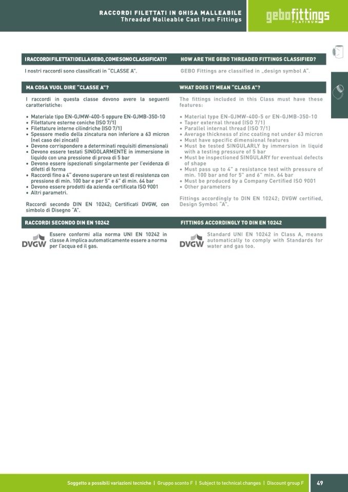 Standard UNI EN 10242 in Class A, means