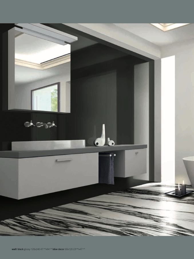 wall: black glossy 120x240 471/4”x941/2” b&w decor 60x120 235/8”x471/4”