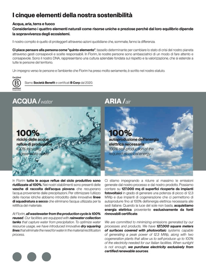 Un impegno verso le persone e l’ambiente che Florim ha preso molto seriamente, è scritto nel nostro statuto.