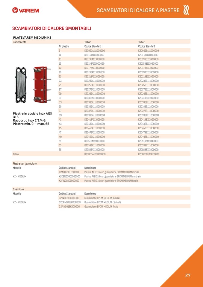 Piastra AISI 316 con guarnizione EPDM MEDIUM iniziale