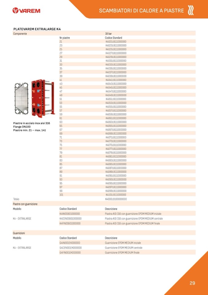 Piastra AISI 316 con guarnizione EPDM MEDIUM iniziale