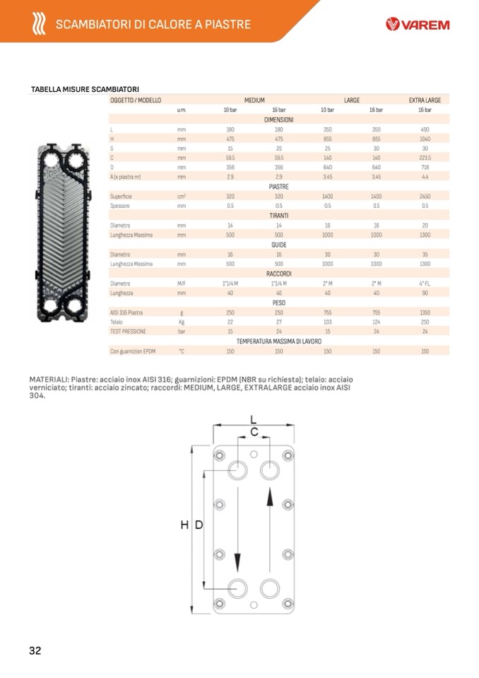 MATERIALI: Piastre: acciaio inox AISI 316; guarnizioni: EPDM (NBR su richiesta); telaio: acciaio