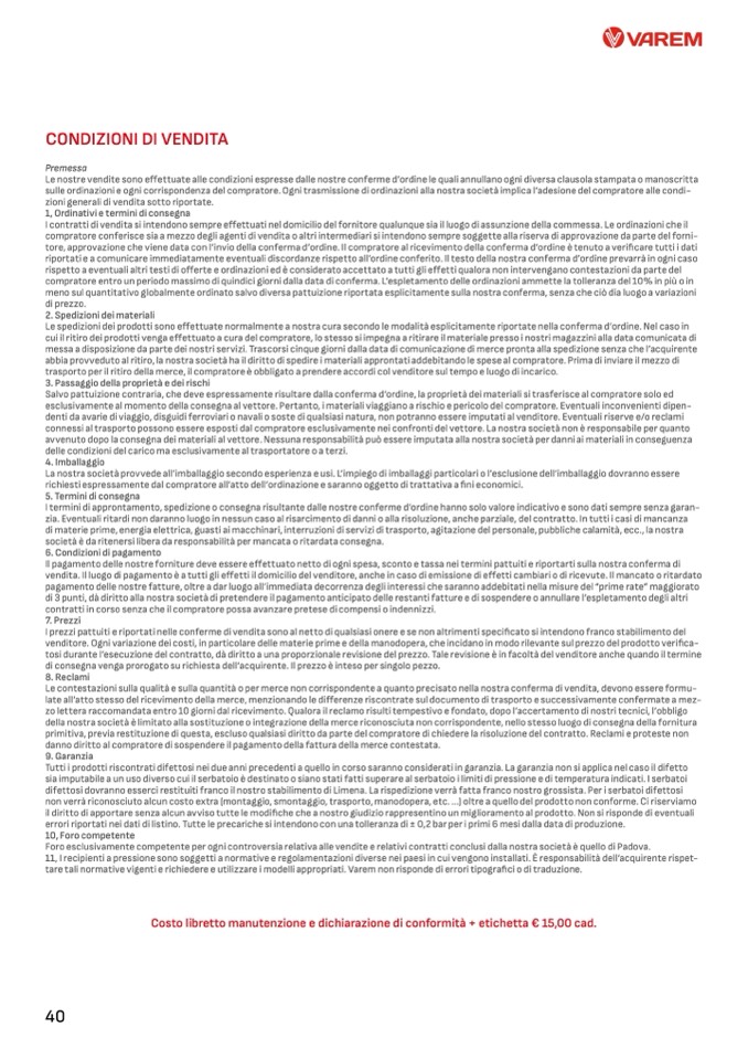 Le nostre vendite sono effettuate alle condizioni espresse dalle nostre conferme d’ordine le quali annullano ogni diversa clausola stampata o manoscritta