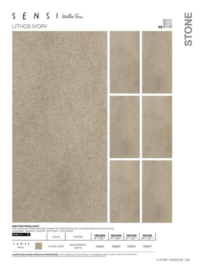 Le grafiche sopra riportate si riferiscono al formato 120x240 / The above designs refer to size 120x240 cm / Les graphismes indiqués ci-dessus se réfèrent au format 120x24