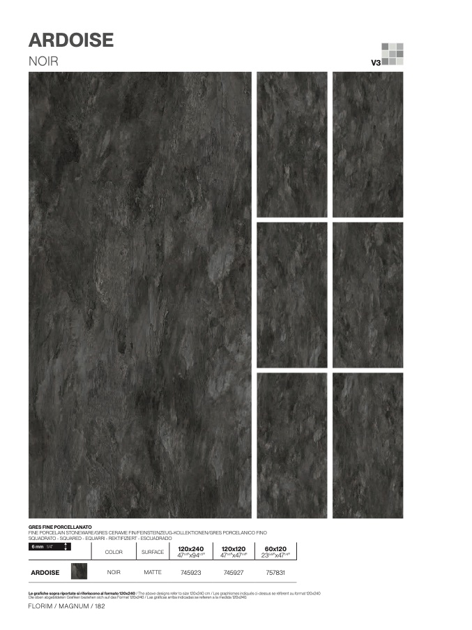 Le grafiche sopra riportate si riferiscono al formato 120x240 / The above designs refer to size 120x240 cm / Les graphismes indiqués ci-dessus se réfèrent au format 120x24
