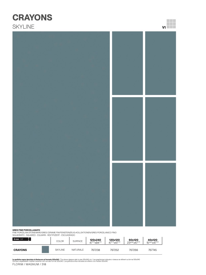 Le grafiche sopra riportate si riferiscono al formato 120x240 / The above designs refer to size 120x240 cm / Les graphismes indiqués ci-dessus se réfèrent au format 120x24