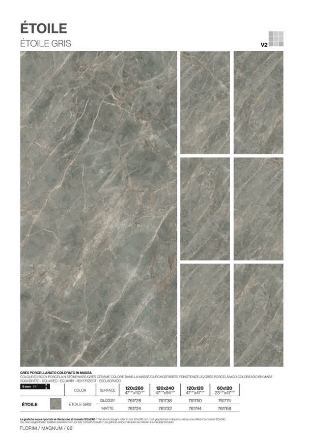 Le grafiche sopra riportate si riferiscono al formato 120x240 / The above designs refer to size 120x240 cm / Les graphismes indiqués ci-dessus se réfèrent au format 120x240
