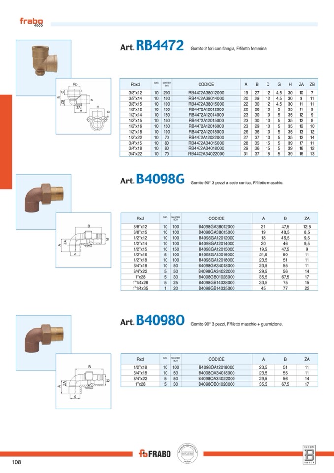 Gomito 2 fori con flangia, F/filetto femmina.
