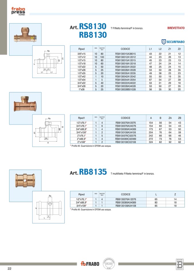 * Profilo M. Guarnizione in EPDM uso acqua.