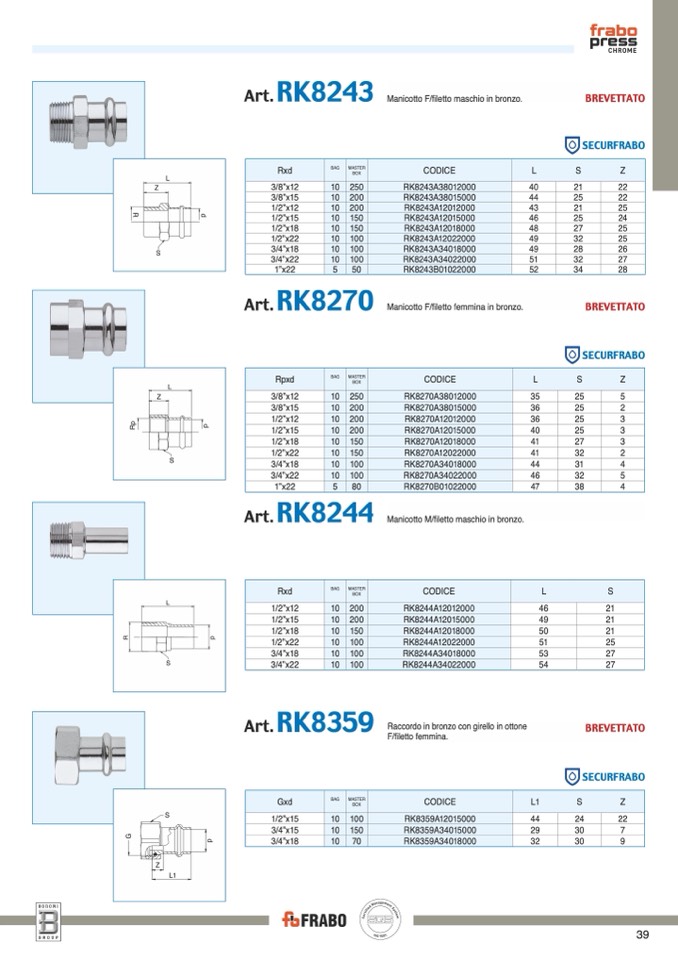 Manicotto F/filetto maschio in bronzo.