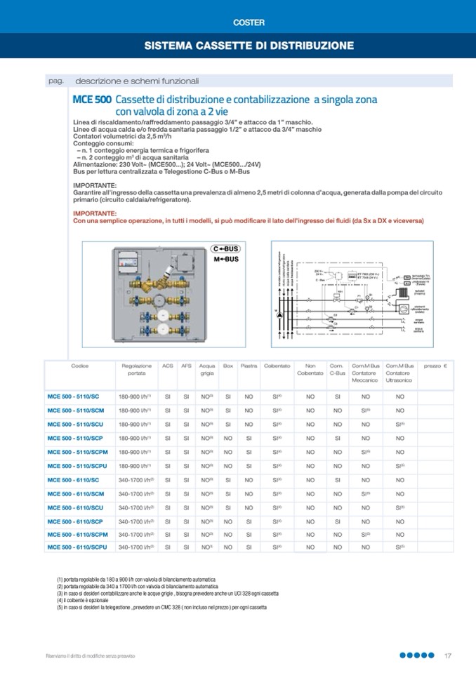 (2) portata regolabile da 340 a 1700 l/h con valvola di bilanciamento automatica