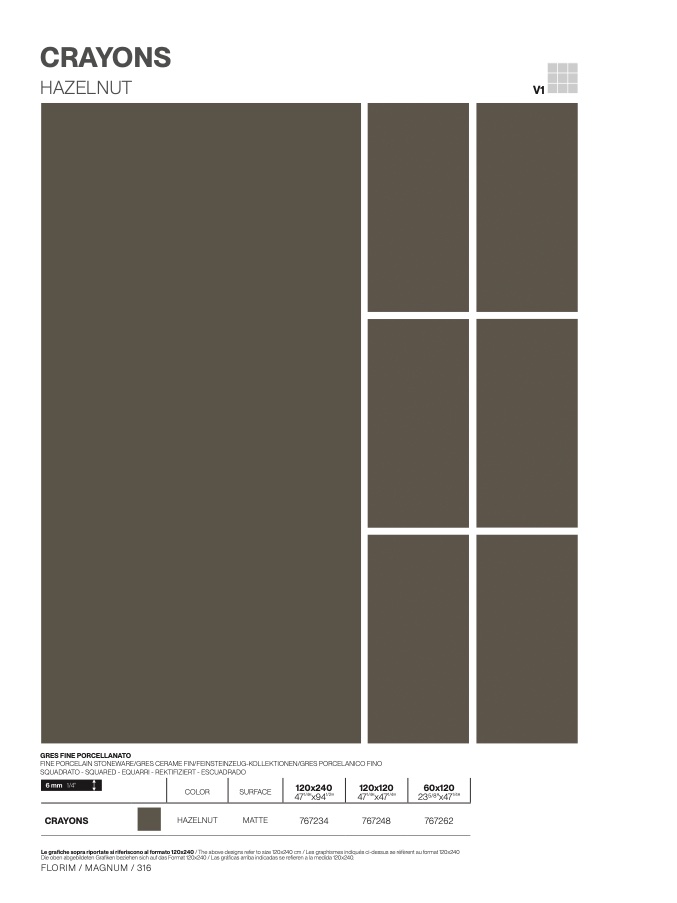 Le grafiche sopra riportate si riferiscono al formato 120x240 / The above designs refer to size 120x240 cm / Les graphismes indiqués ci-dessus se réfèrent au format 120x24