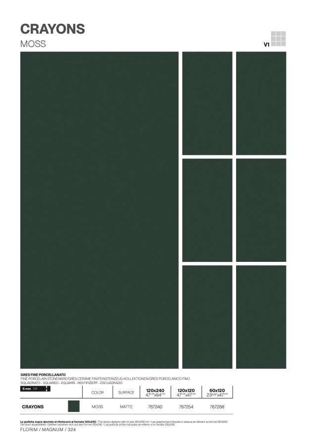 Le grafiche sopra riportate si riferiscono al formato 120x240 / The above designs refer to size 120x240 cm / Les graphismes indiqués ci-dessus se réfèrent au format 120x24