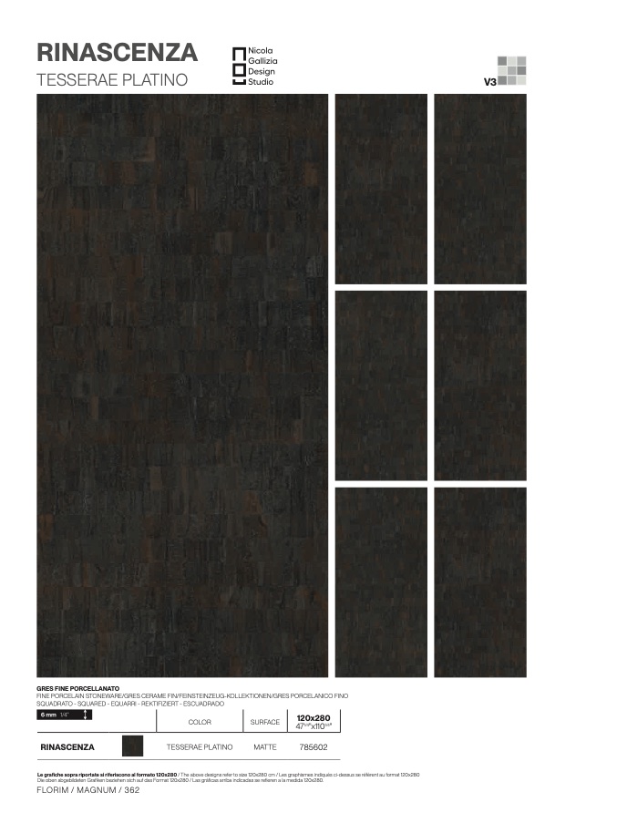 Le grafiche sopra riportate si riferiscono al formato 120x280 / The above designs refer to size 120x280 cm / Les graphismes indiqués ci-dessus se réfèrent au format 120x280