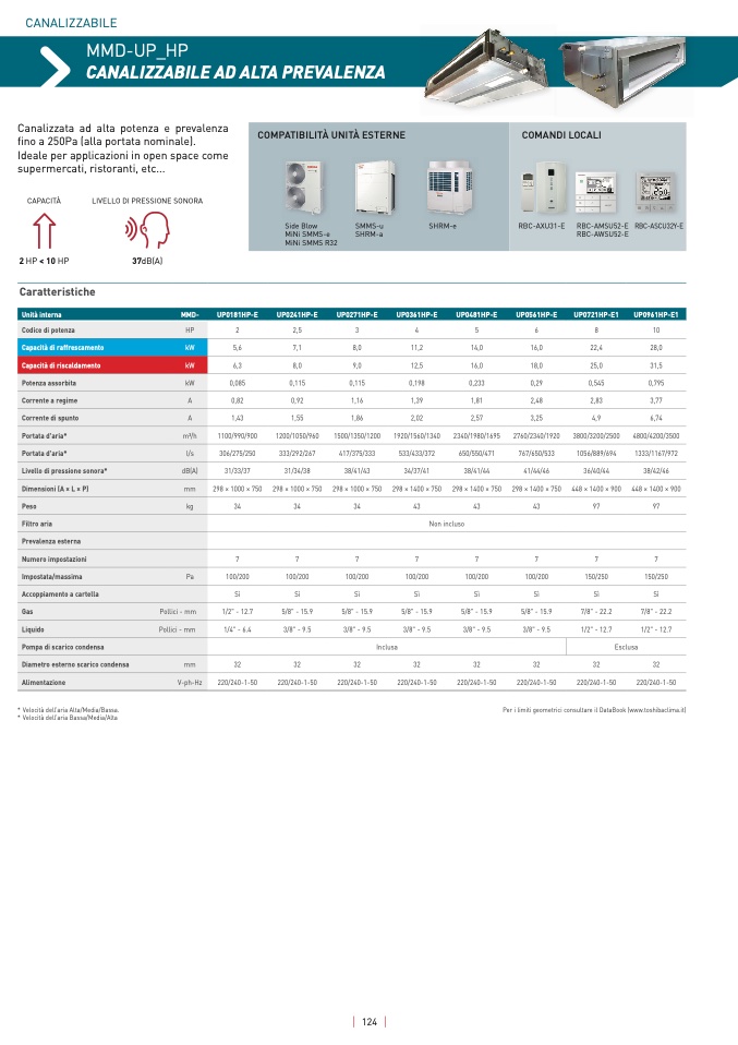 Per i limiti geometrici consultare il DataBook (www.toshibaclima.it