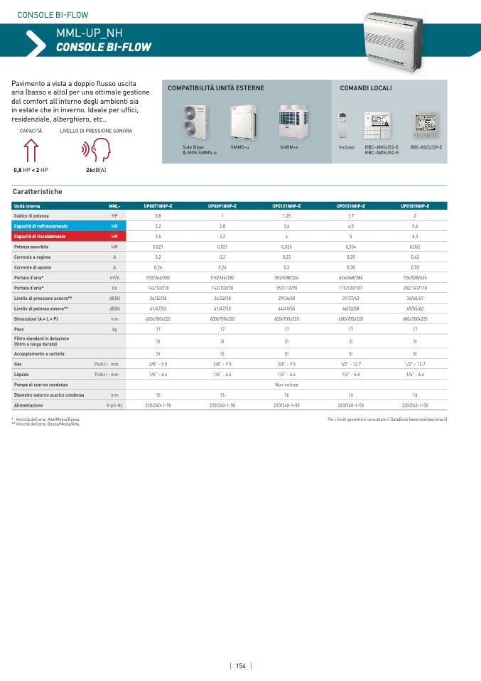 Per i limiti geometrici consultare il DataBook (www.toshibaclima.it