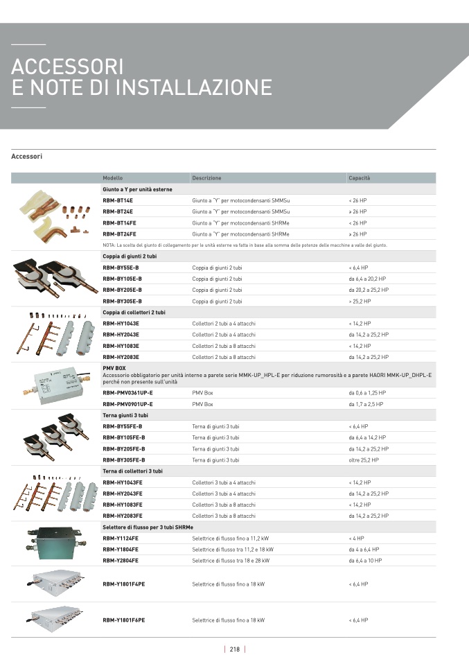 NOTA: La scelta del giunto di collegamento per le unità esterne va fatta in base alla somma delle potenze delle macchine a valle del giunto