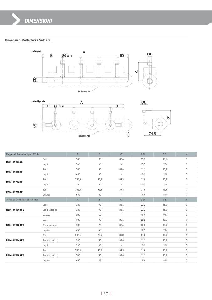 Terna di Collettori per 3 Tubi