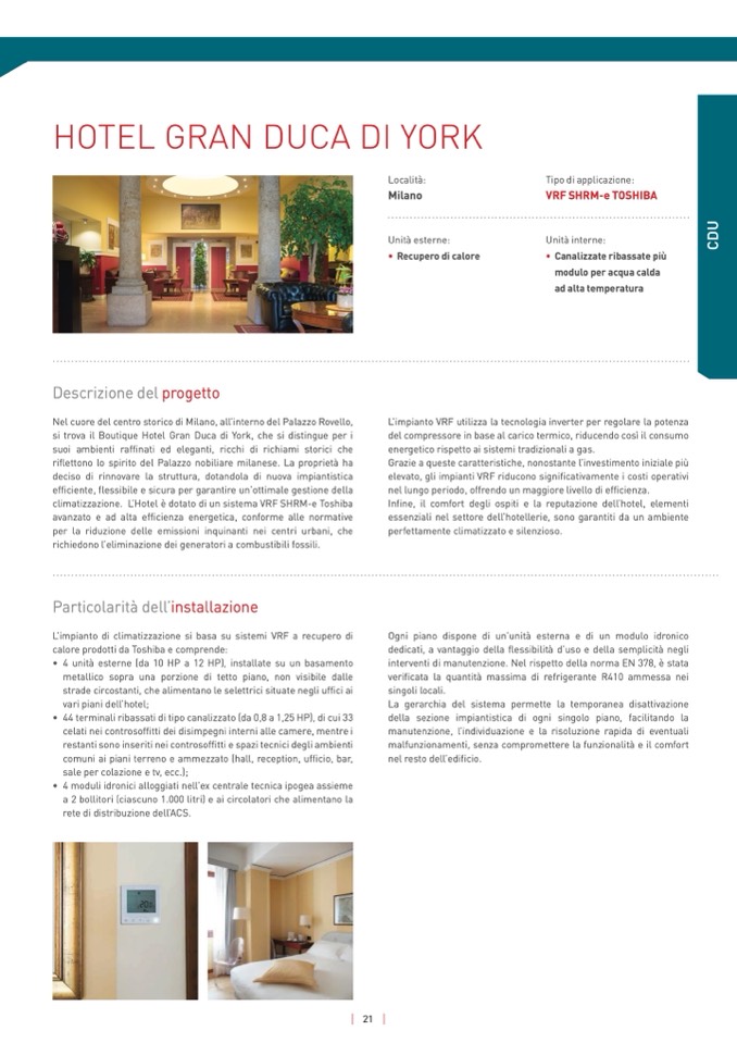 climatizzazione. L’Hotel è dotato di un sistema VRF SHRM-e Toshib