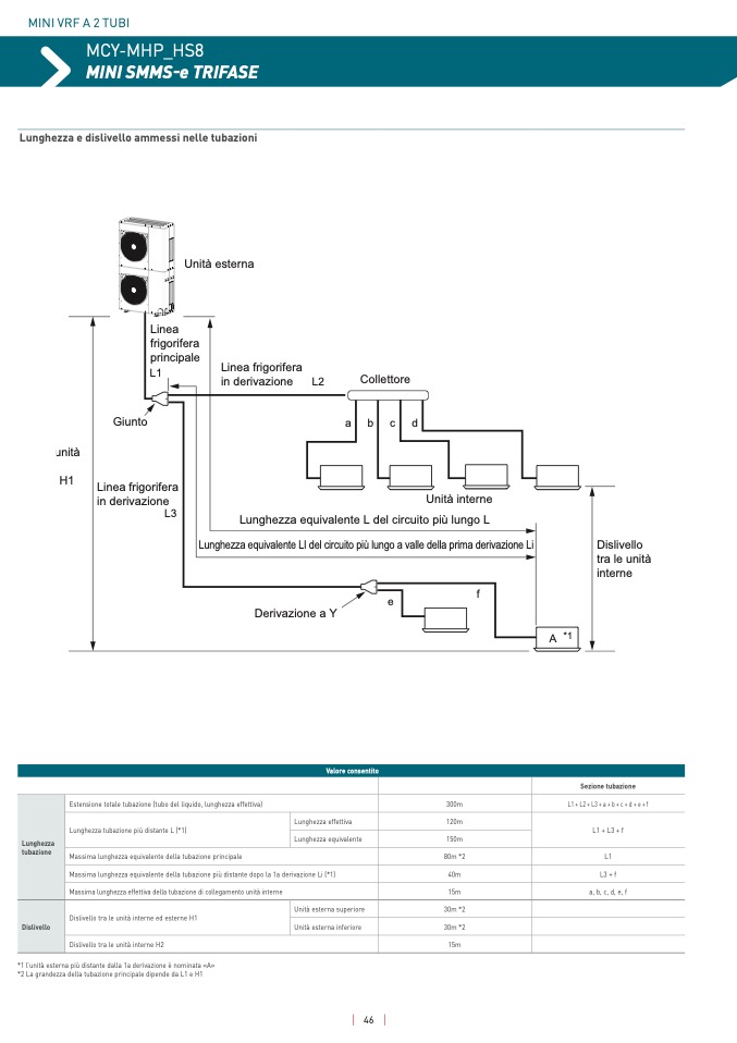 *1 l’unità esterna più distante dalla 1a derivazione è nominata «A»
