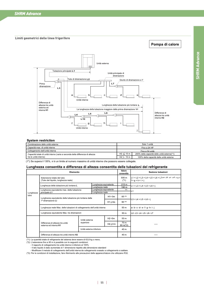 (*1): La quantità totale di refrigerante del sistema deve essere di 63,8 kg o meno
