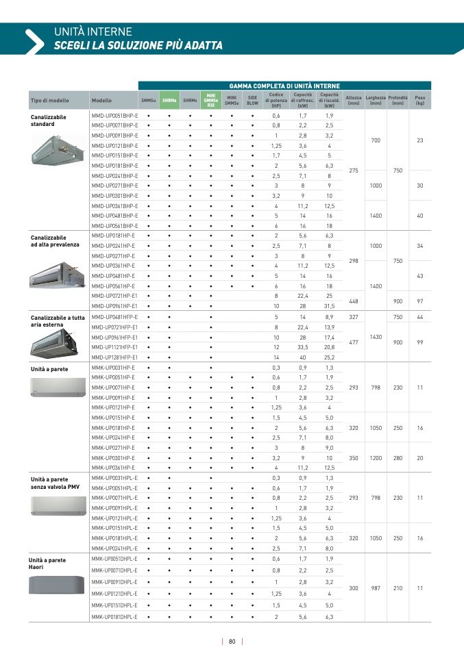 GAMMA COMPLETA DI UNITÀ INTERNE