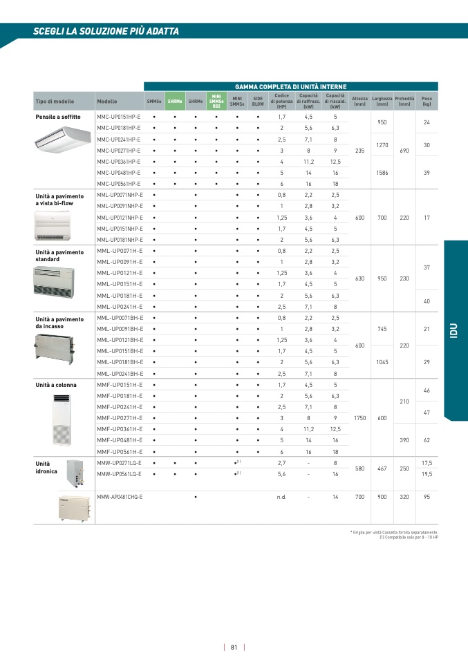 GAMMA COMPLETA DI UNITÀ INTERNE