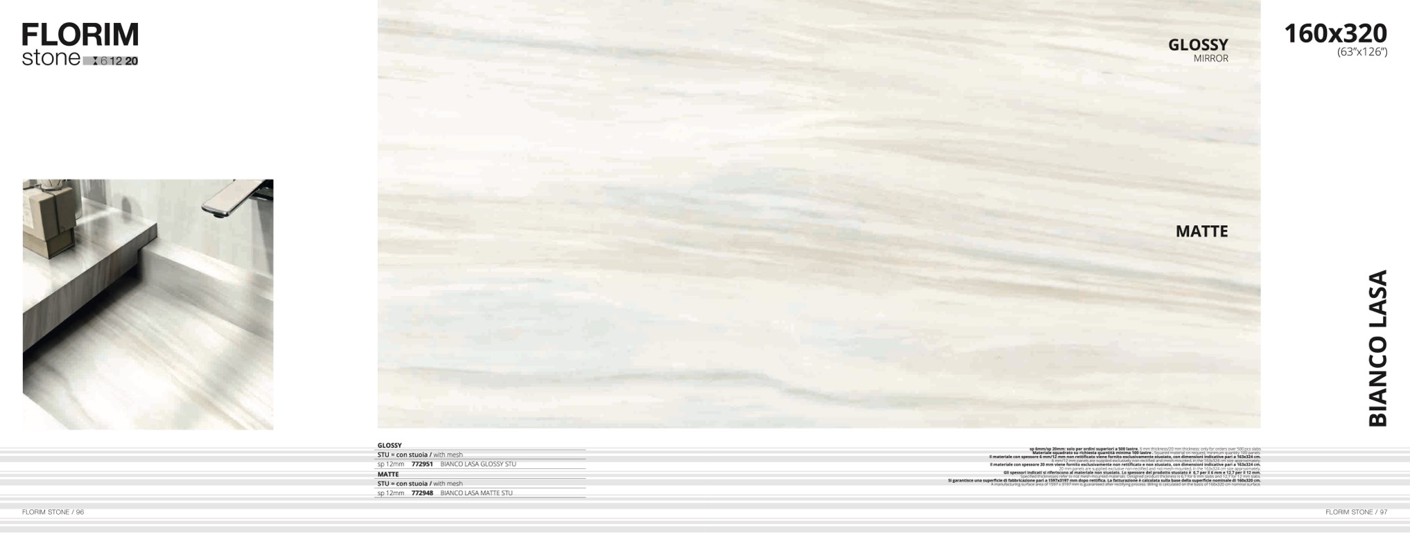 sp 6mm/sp 20mm: solo per ordini superiori a 500 lastre. 6 mm thickness/20 mm thickness: only for orders over 500 pcs slab