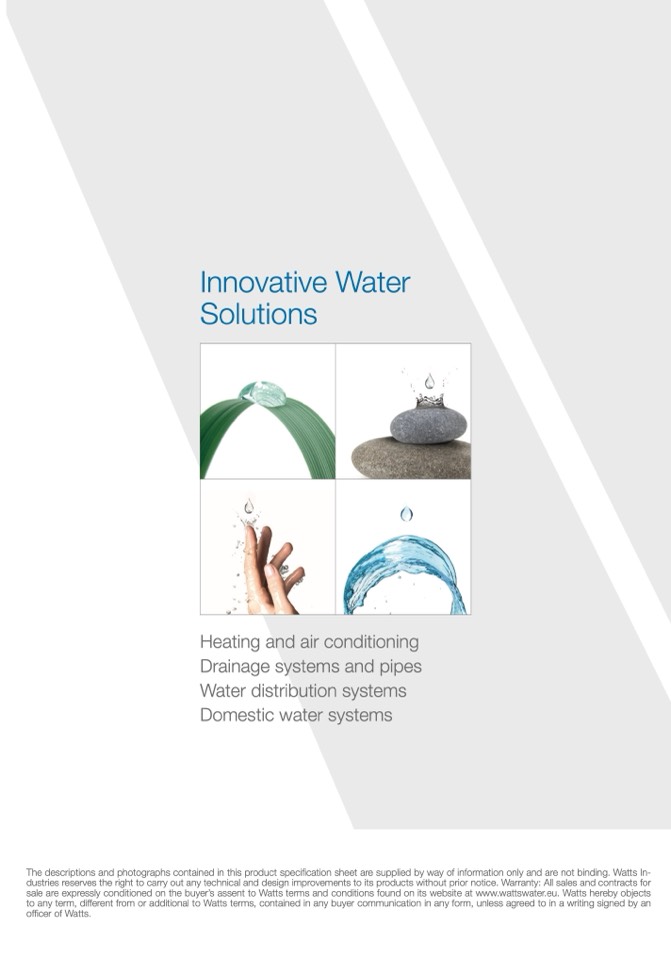 The descriptions and photographs contained in this product specification sheet are supplied by way of information only and are not binding. Watts In-