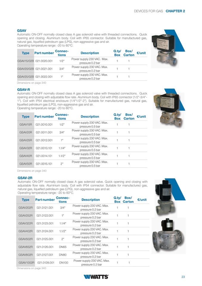 1"). Coil with IP54 electrical enclosure (1/4"1/2"-2"). Suitable for manufactured gas, natural gas,